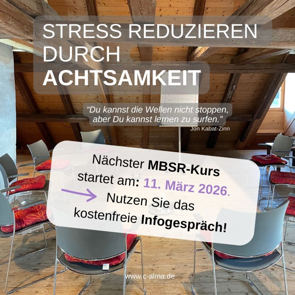 Wichtiger Hinweis: Ein MBSR Kurs kann ein sinnvoller ergänzender Ansatz zu einer medizinischen und/oder psychotherapeutischen Behandlung sein. Der MBSR-Kurs kann eine erforderliche Behandlung jedoch nicht ersetzen.