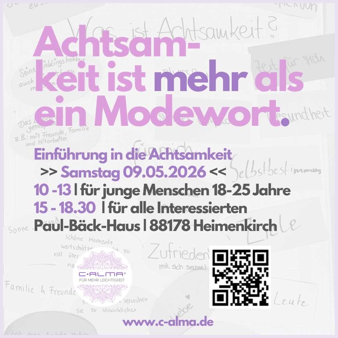 * dieses spezielle Training biete ich zu einem vergünstigten Preis an, um vor allem jungen Menschen den frühen Einstieg in das Thema der Achtsamkeit zu erleichtern.
